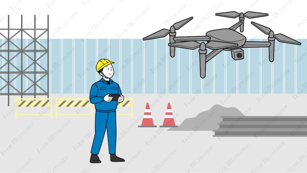 建設現場で行われる「ドローン測量」「点群処理」「現場DX」の3シーンを、