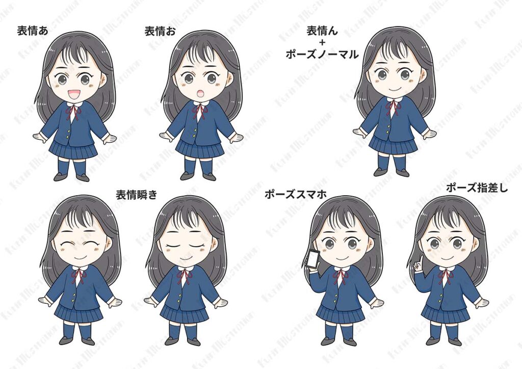 映像作品で登場するキャラクターを制作しました。 主人公となる方の写真と参考イラストをいただき雰囲気を寄せて制作しています。 表情差分とポーズ差分が必要とのことでしたので目や口、腕のパーツをレイヤーごとに分けて納品しております。
