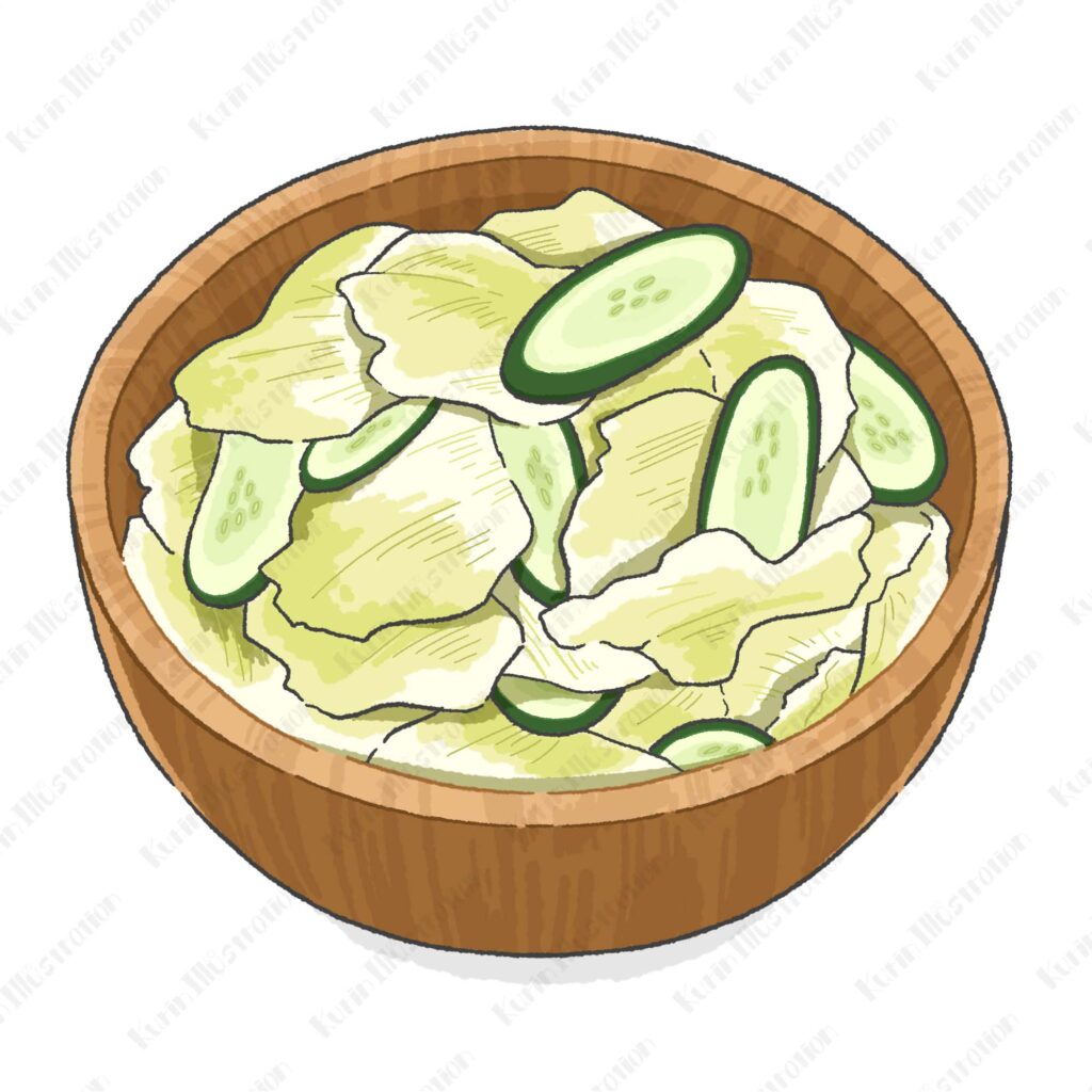 単調にならないように、器のイラストもそれぞれ変えているのもポイントです。
