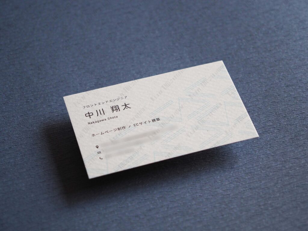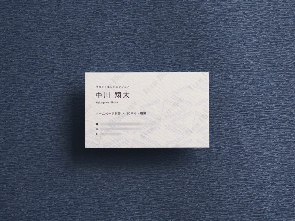 フロントエンドエンジニアとして活躍されている中川さまの名刺を作成しました。