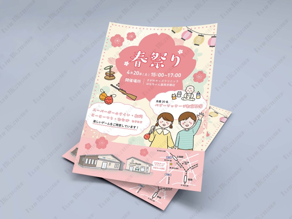 以前に制作させていただいた夏祭りのデザインを元に春っぽく変更してほしい、とのご要望でしたので