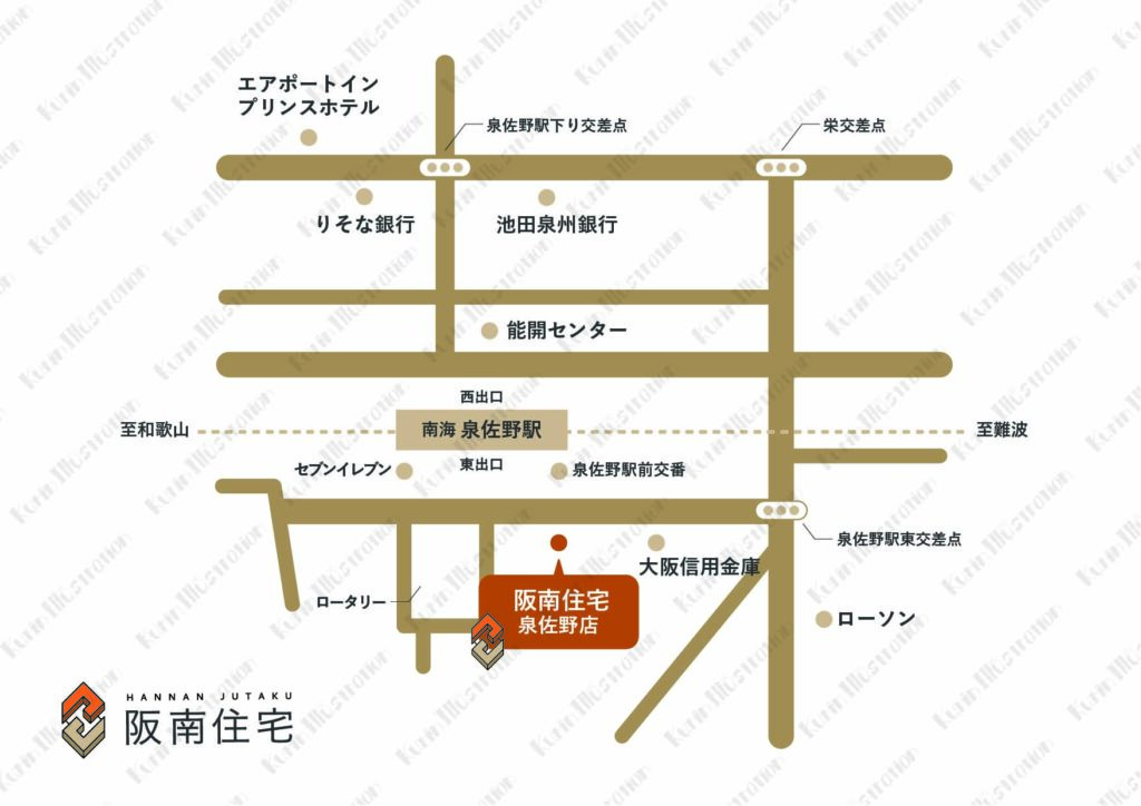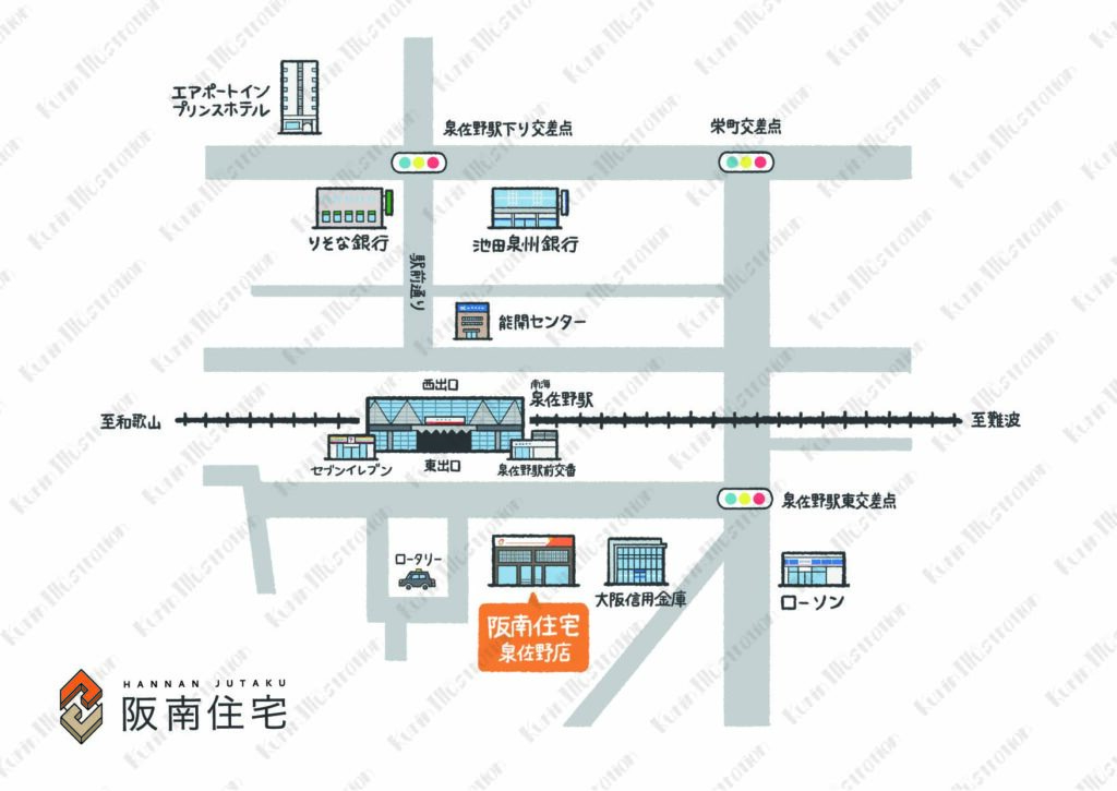 株式会社阪南住宅様のご依頼で、泉佐野店の店舗案内用地図(マップデザイン)を制作しました。
