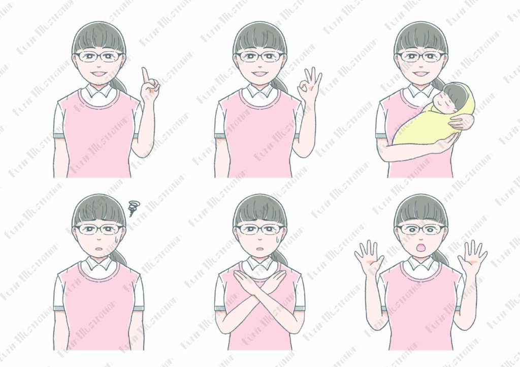 ベースになるイラストと、表情・ポーズ違いを合わせて6種類制作しました。